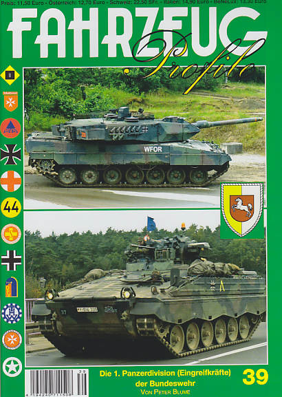 | “Fahrzeug Profile No.39 Die.1 Panzerdivision(Eingreifkafte) der Bundeswehr” (Unitech) 19.5x21cm、49頁、ドイツ語、カラー写真多数 ¥2,415− 送料¥300(代引きの場合+200) 2009/4/2追加 |